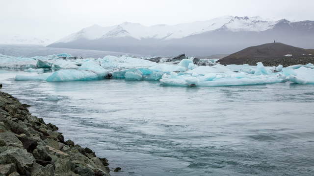 Mündung des Gletschers Vatnajökull in den Gletschersee Jökulsárlón. Zeitraffer Download als 4K Video Download.