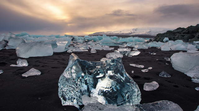 Island-Zeitraffer Sonnenuntergang am Diamond Beach, Time-Lapse Stock Footage Ultra High Definition Download in 4K und 6K.